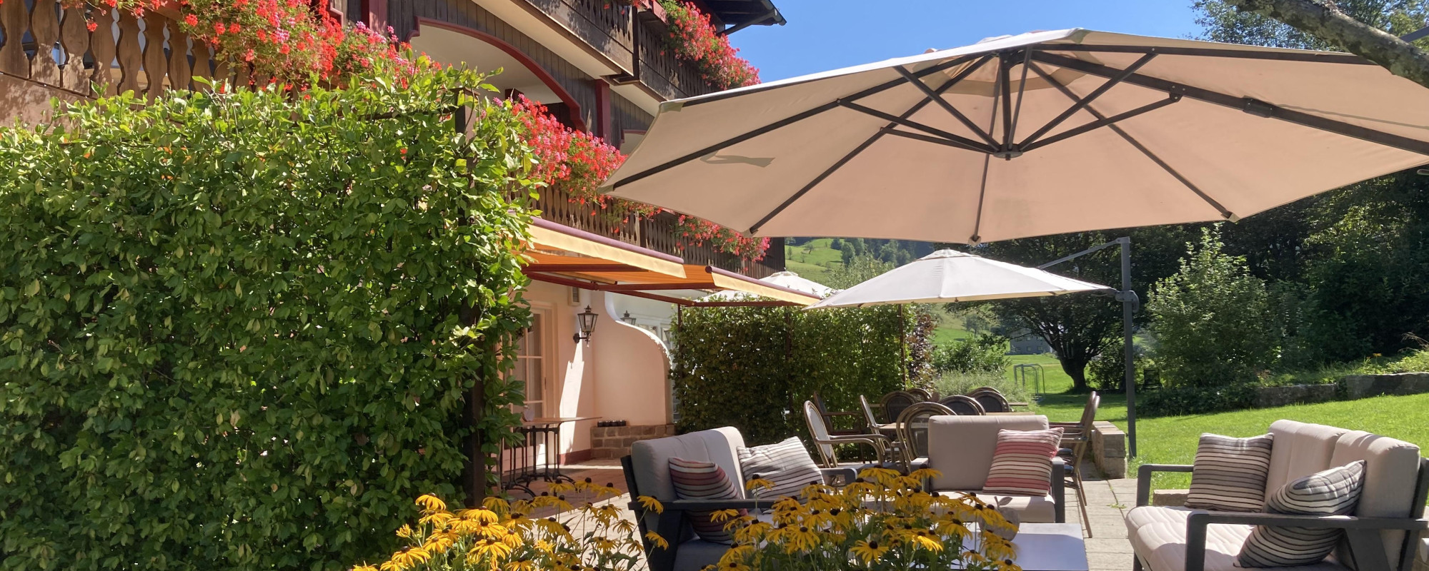 Am Fuße des Südhanges von Oberstaufen im Weißachtal, eingebettet in Wiesen und alte Obstbäume finden Sie den Mühlenhof. Herrlicher Blick auf Hochgrat und Imberg, Kuhglockengebimmel, der Duft nach Heu weckt so manche Erinnerung … Erholung ist angesagt.